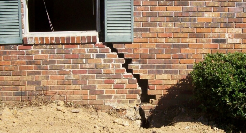 Фото 1. Вертикальная трещина у основания здания