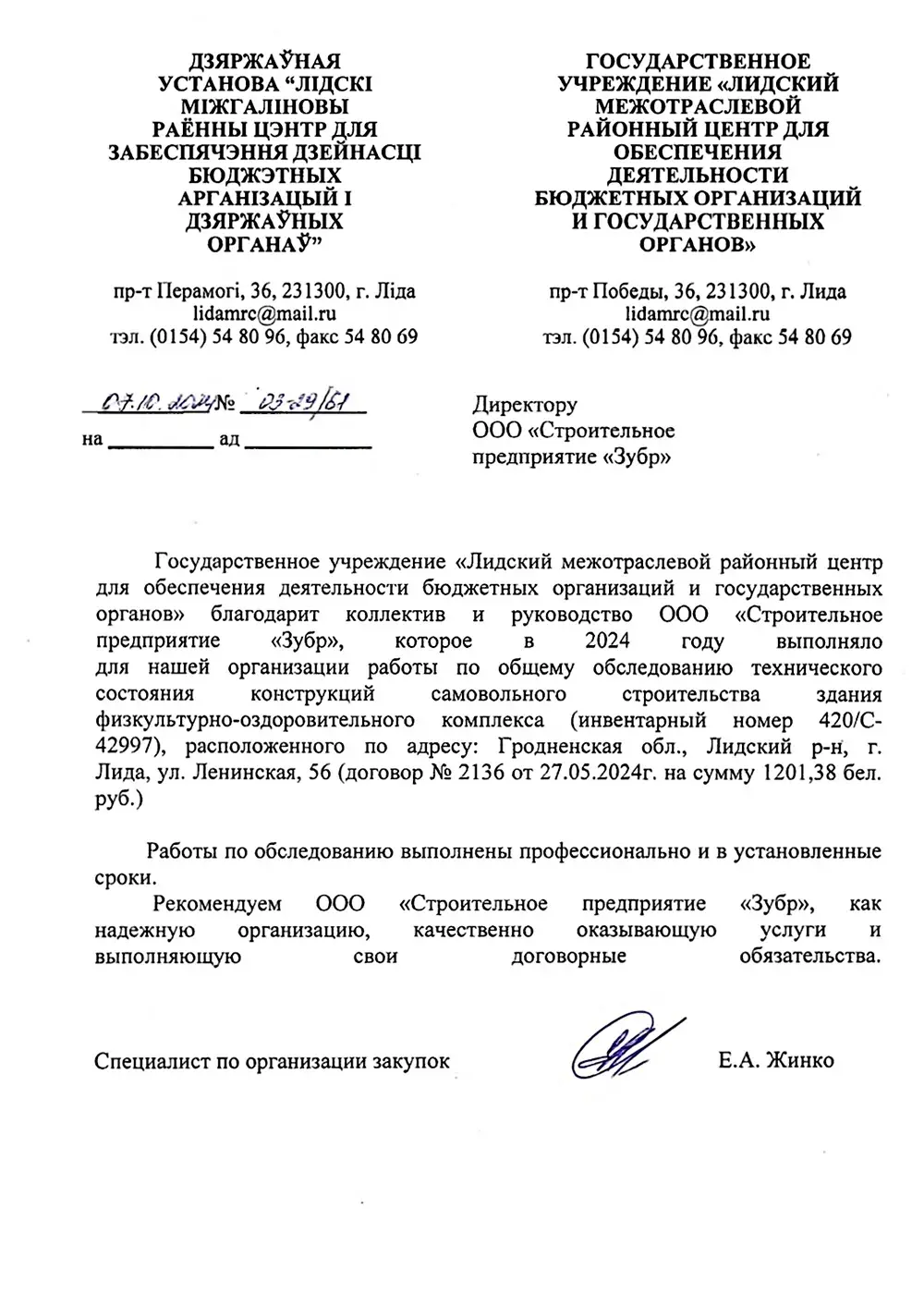 ГУ «Лидский межотраслевой районный центр для обеспечения бюджетных организаций и государственных органов»