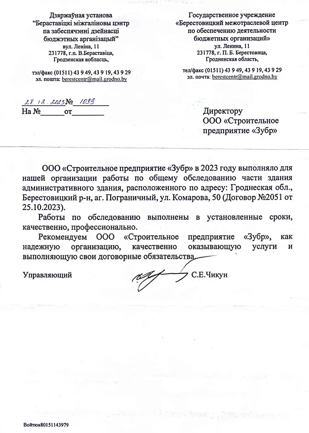 ГУ "Берестовицкий межотраслевой центр по обеспечению деятельности бюджетных организаций"