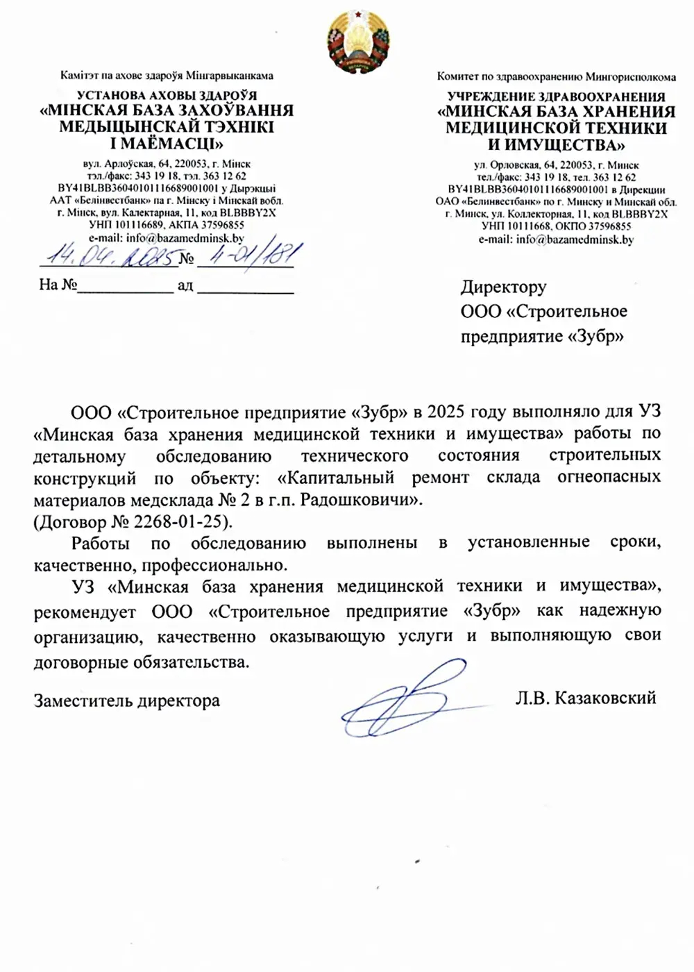 УЗ «Минская база хранения медицинской техники и имущества»